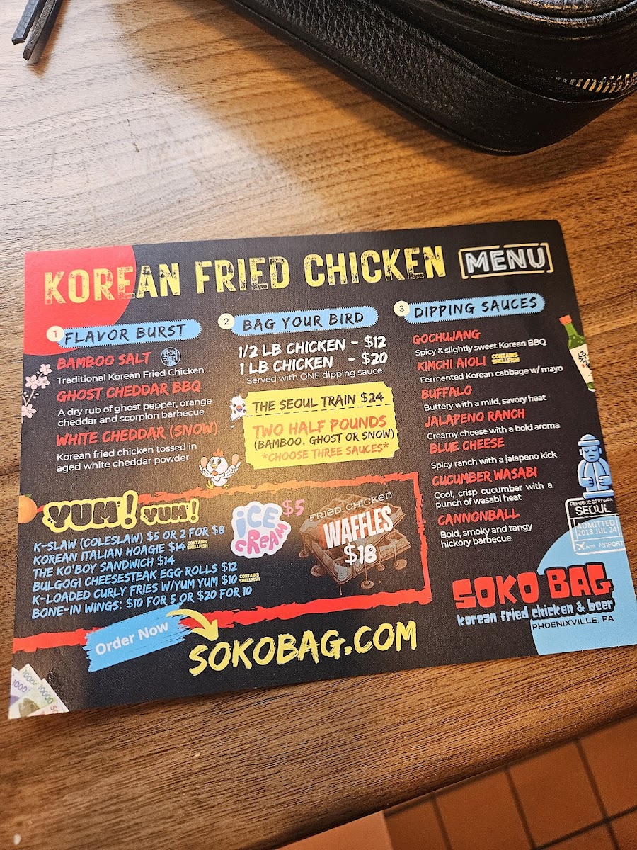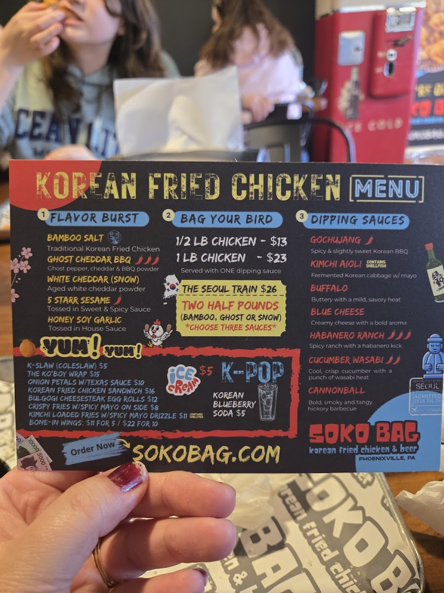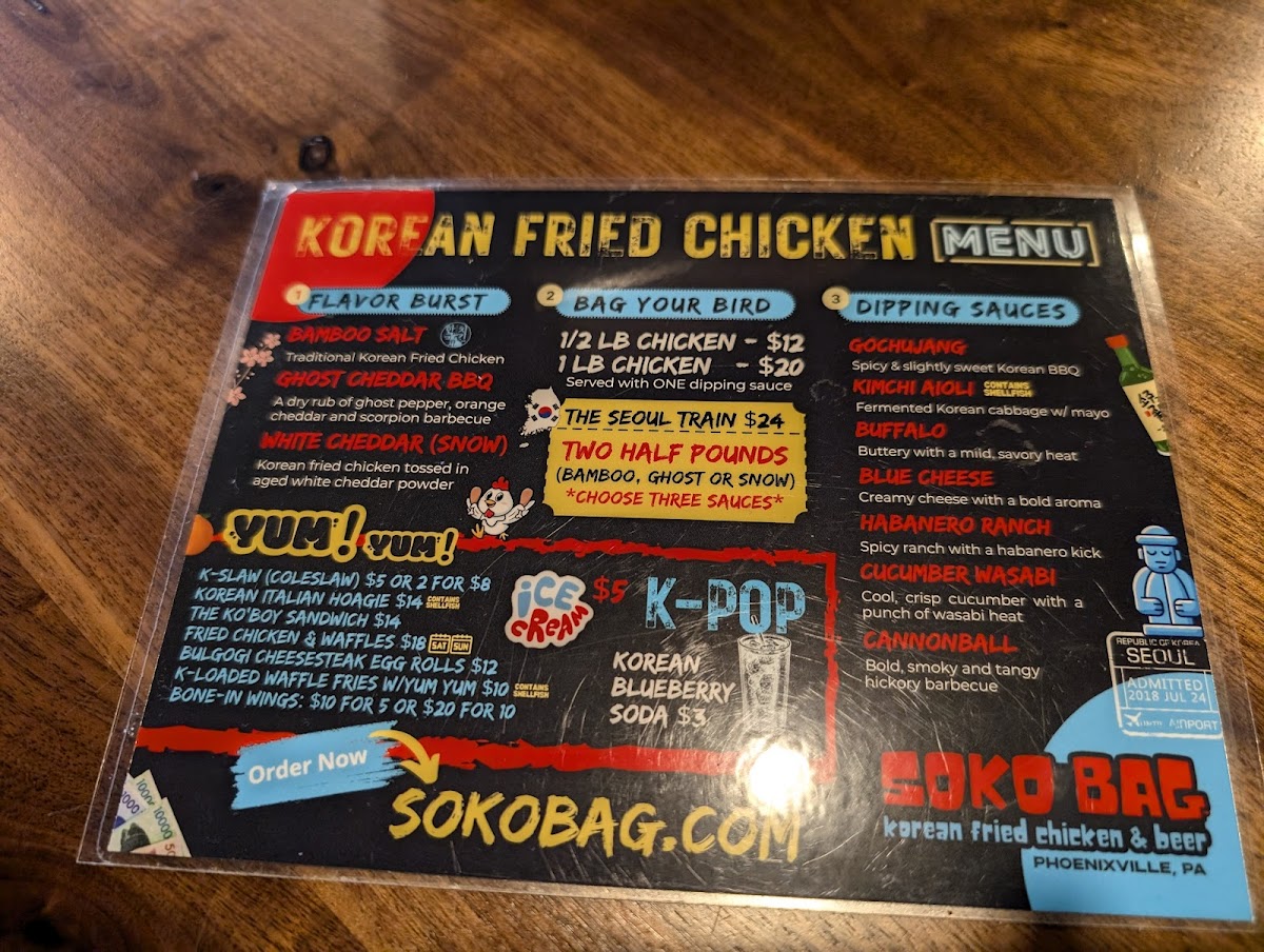 The best ticket to Korea! Your choice of two: Bamboo Salt, Ghost Cheddar BBQ or Snow Chicken (tossed in aged white cheddar powder) and three sauces on the side.